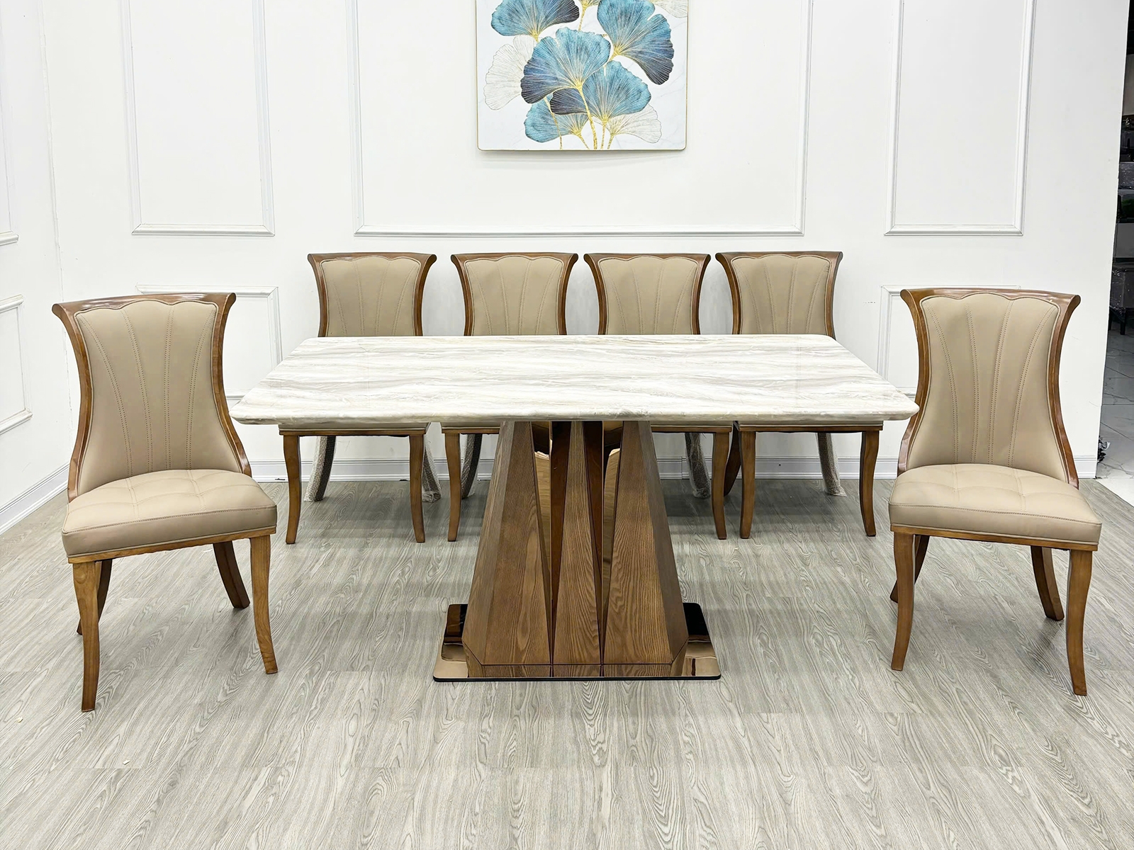 3. Bàn Ăn Mặt Đá Chữ Nhật Hiện Đại Ghế Bọc Nệm - BA294