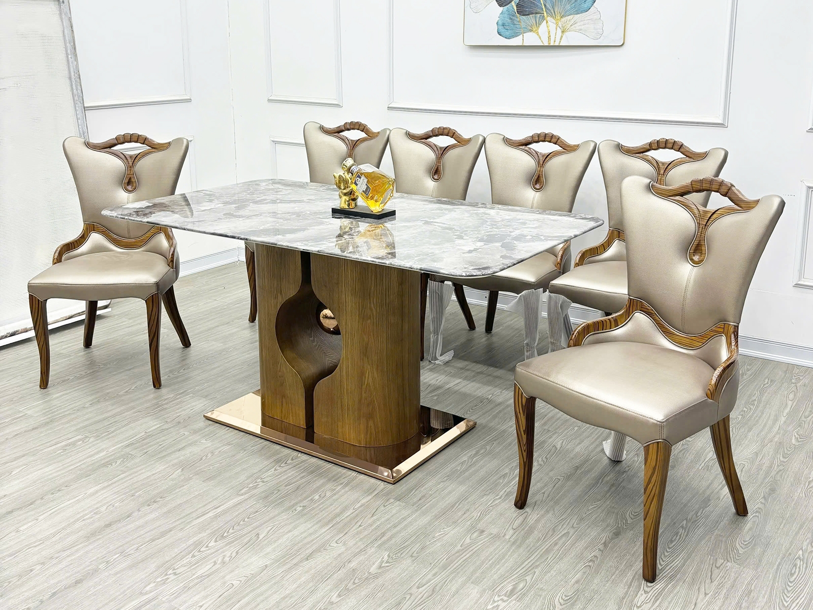 Bàn Ăn Mặt Đá Chữ Nhật Ghế Bọc Nệm - BA295