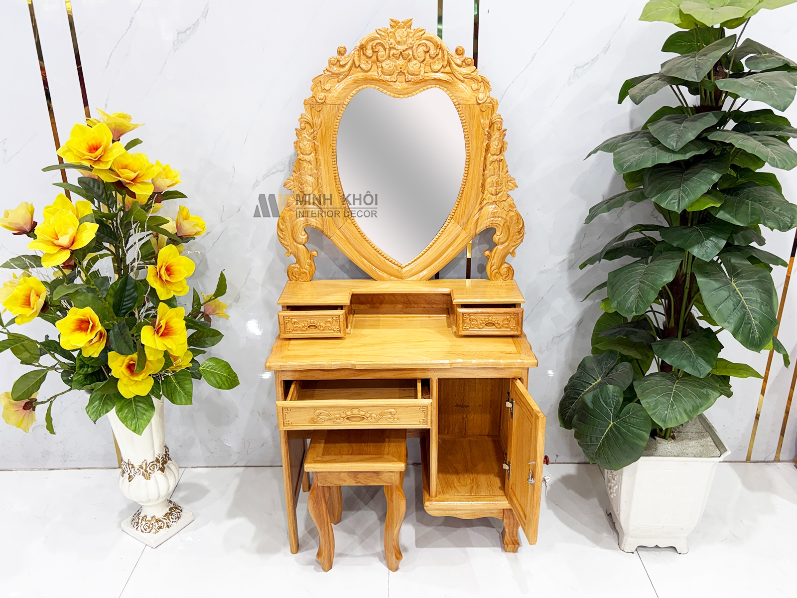 Đặc Điểm Nổi Bật Của Bàn Trang Điểm Gỗ Gõ Đỏ Gương Trái Tim BTD603
