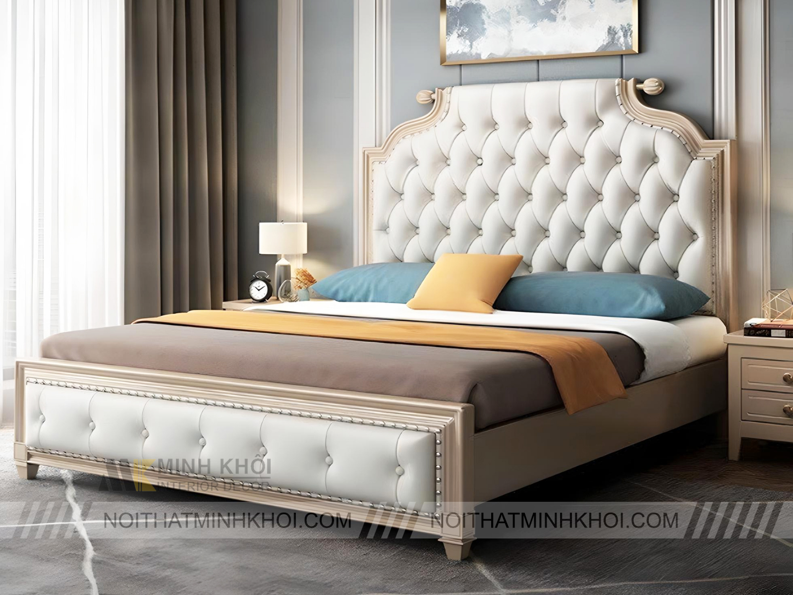 Sở hữu Giường Đẹp Bọc Da Hiện Đại Nhập Khẩu - GN1313 là cách hoàn hảo để biến phòng ngủ của bạn thành một không gian đẳng cấp và ấm áp. Sản phẩm này là sự lựa chọn tuyệt vời cho những người yêu thích sự sang trọng và chất lượng trong thiết kế nội thất.
