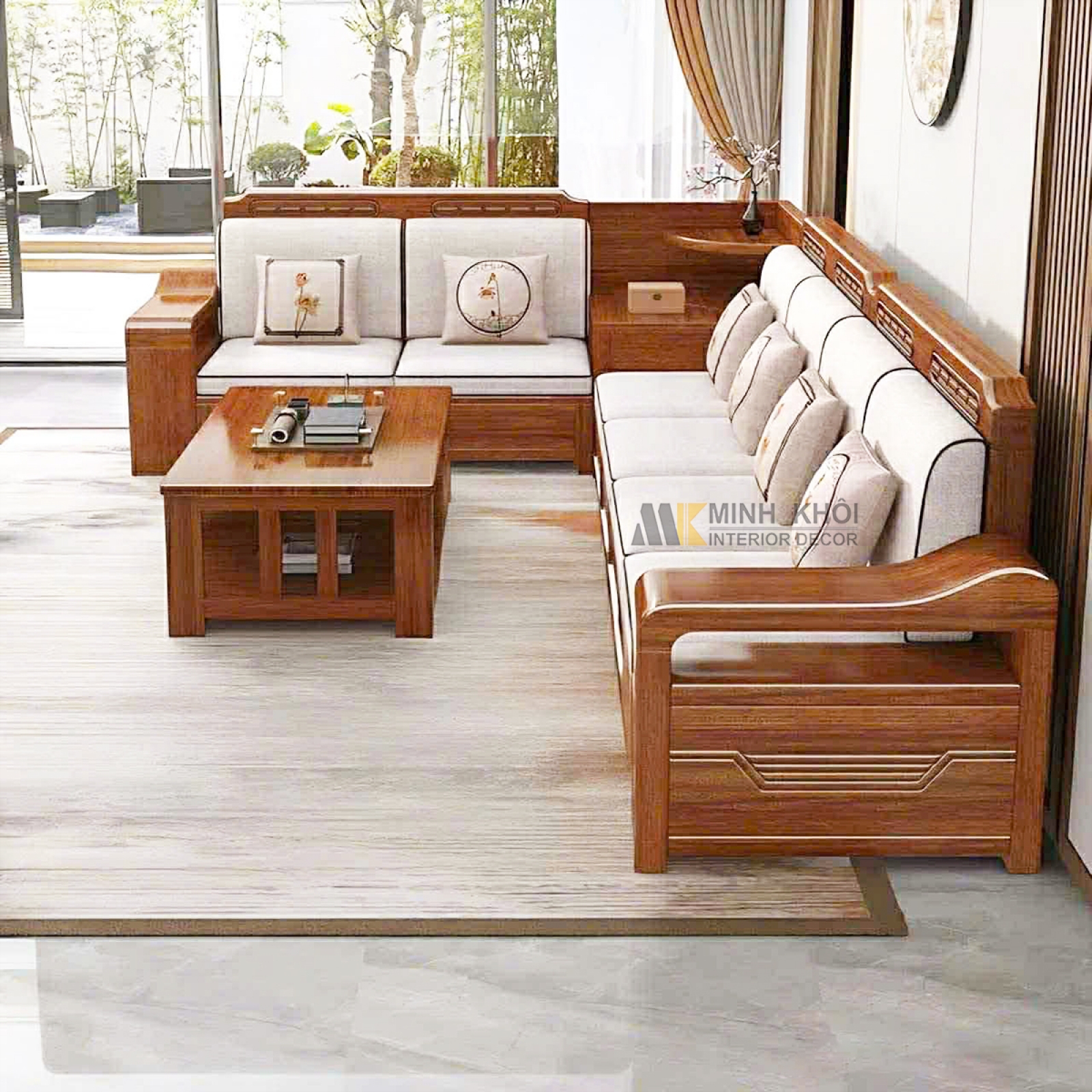 3. Sofa Gỗ Gõ Đỏ Góc L Hiện Đại - SF886