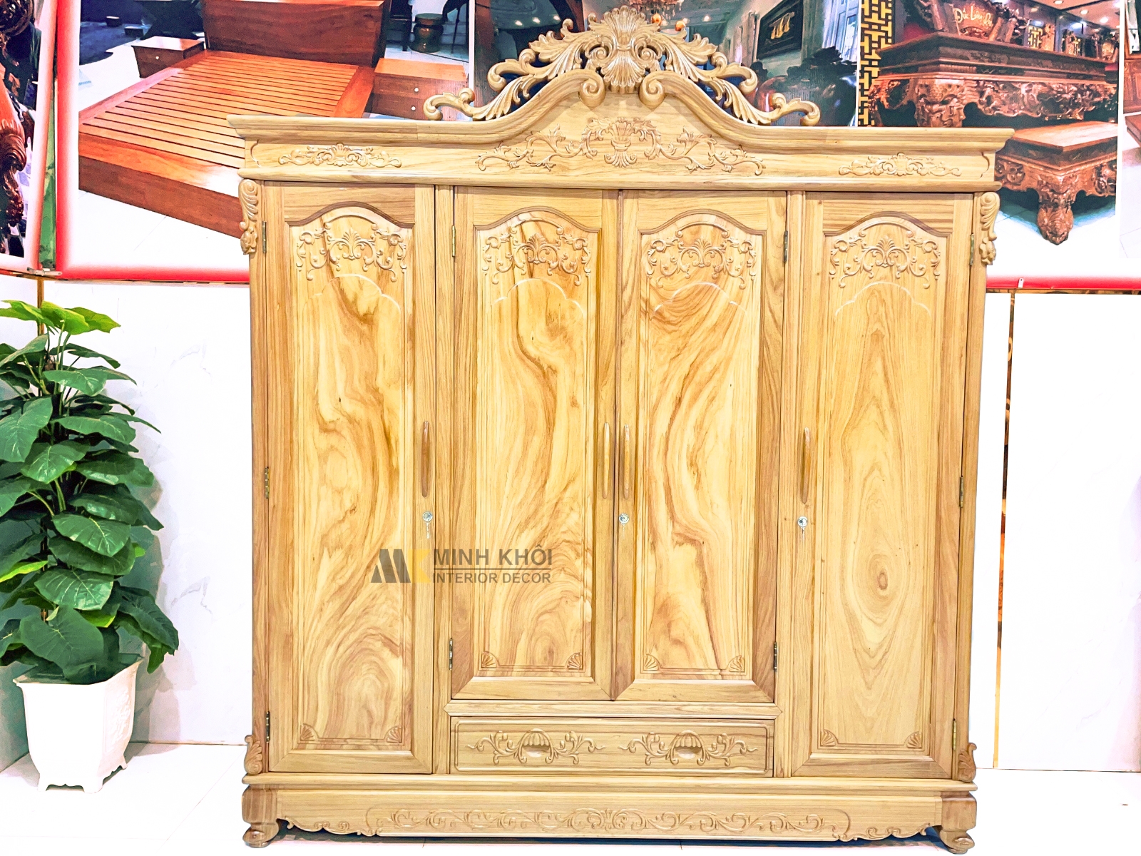 - Phù hợp với mọi không gian cao cấp: Kích thước lớn cùng thiết kế bề thế, chiếc tủ là lựa chọn lý tưởng cho các không gian phòng ngủ biệt thự, nhà phố rộng rãi hoặc những ai yêu thích phong cách nội thất gỗ tự nhiên hoàng gia.