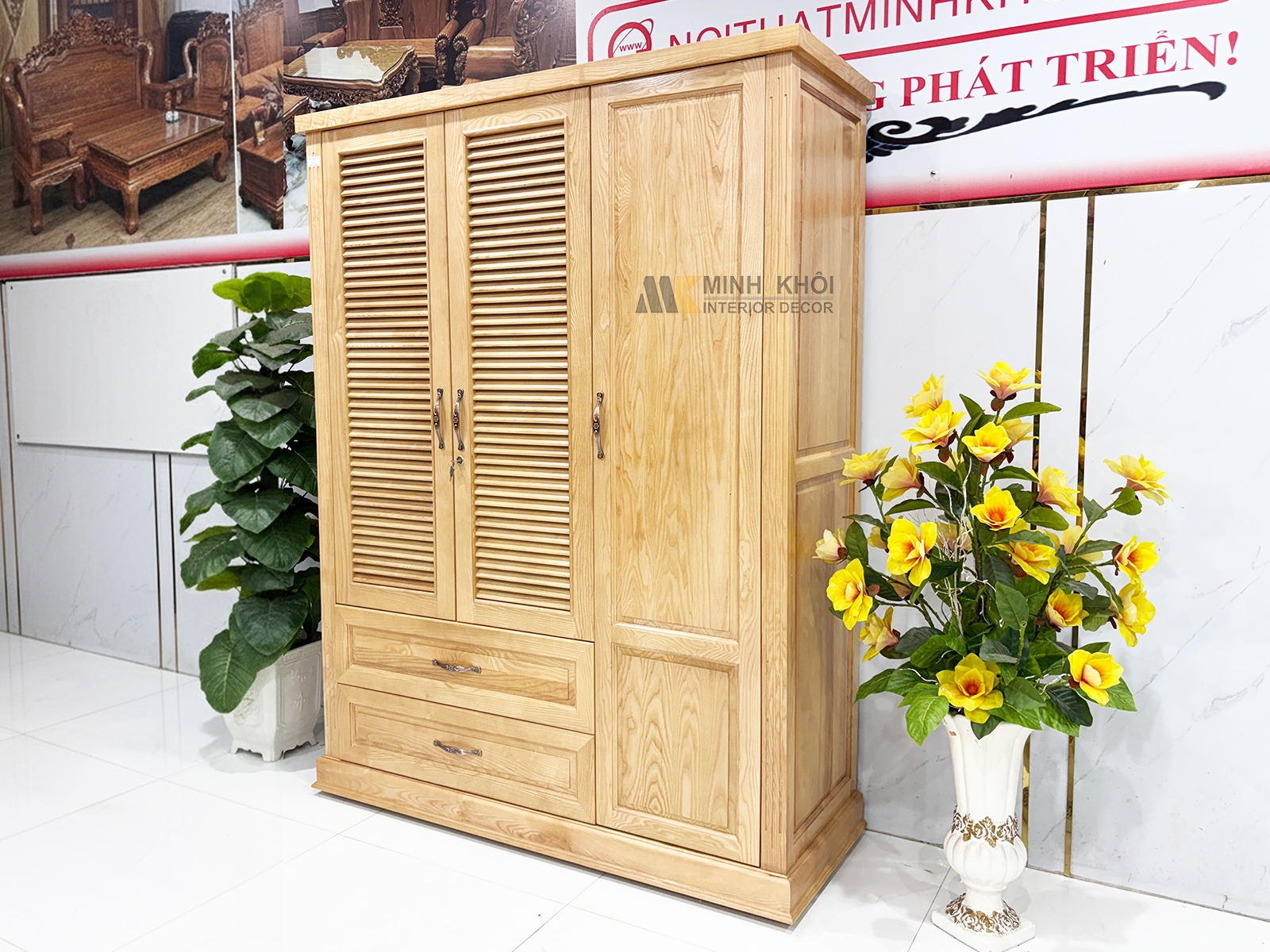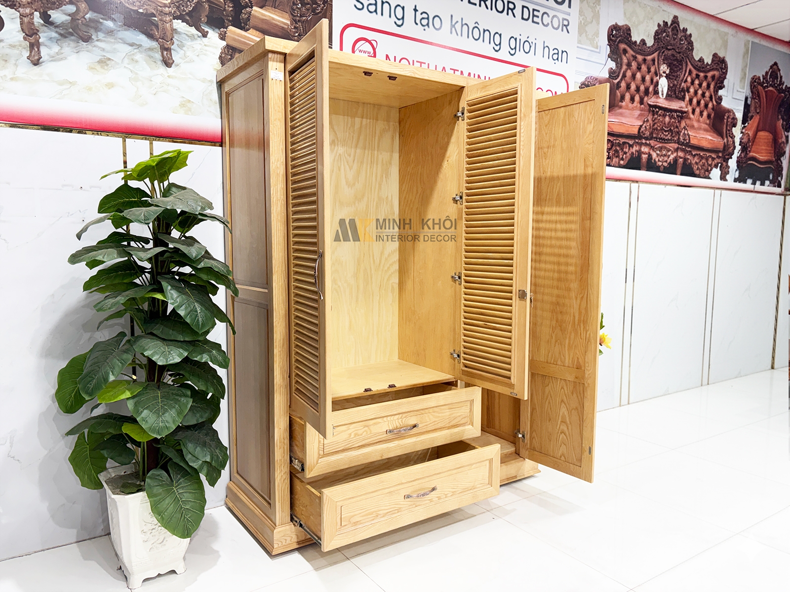 Tủ áo gỗ sồi cánh chớp mang đậm phong cách hiện đại, chú trọng công năng, đem lại sự tiện nghi tối đa cho gia đình.